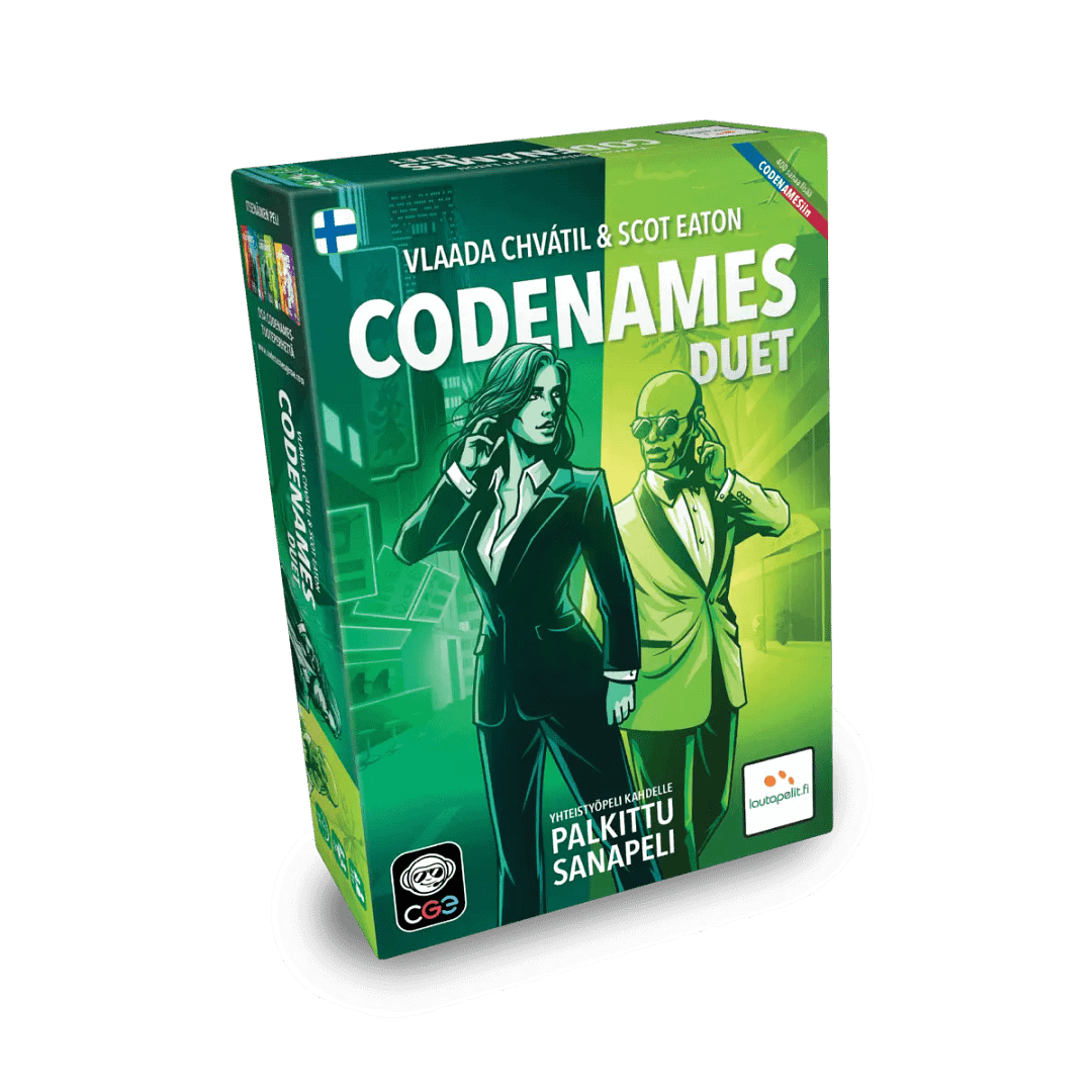 Codenames Duet -pelissä ette enää kilpaile toisia vastaan – nyt työskentelette yhdessä parina (tai kahdessa ryhmässä) jännittävässä yhteistyöpelissä. Tehtävä? Löytäkää kaikki salaiset agenttinne, jotka piileskelevät koodinimien ruudukossa. Pelin koukku? Kumpikin teistä näkee vain osan avainkortista – eikä kumpikaan tiedä koko totuutta. Codenames Duet sopii täydellisesti kahdelle pelaajalle, mutta toimii myös isommalla porukalla, kun halutaan kevyempi, vähemmän kilpailullinen pelikokemus.
