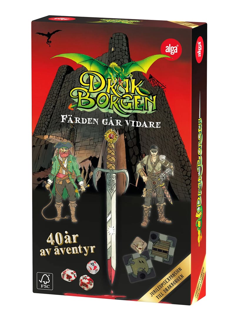 Återlanseringen av Drakborgen blev en succé! Eftersom fantasyklassikern nu fyller 40 år firas det med denna jubileumsexpansion… med blodsbestänkta tärningar, nya föremål i skattkammaren, två nya hjältar med specialvapen, flera rumskort, nya magiska ringar, nya labyrintbrickor med hemliga gångar, och inte minst Ödestornet!